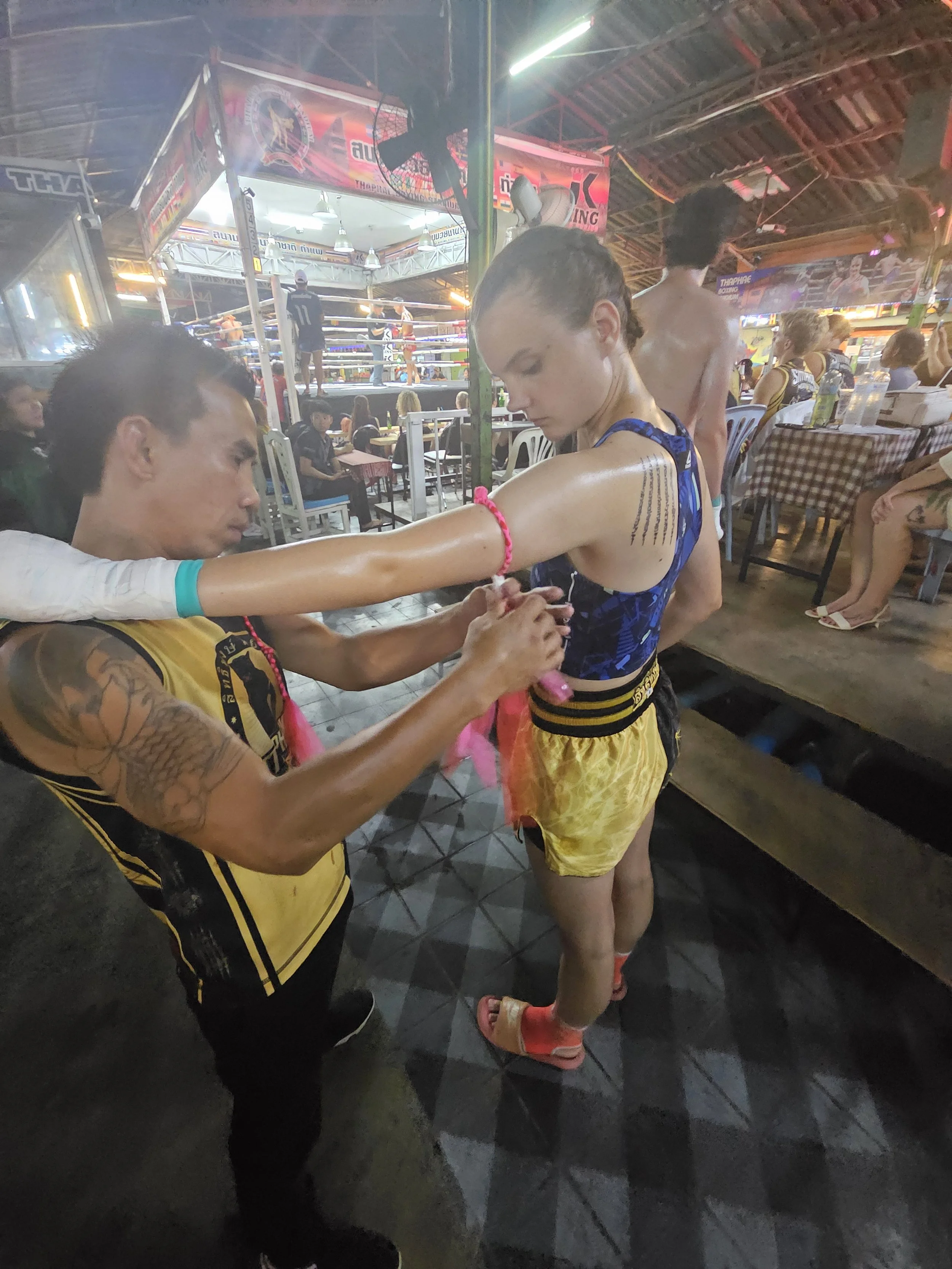 Classes are capped at 12 students, led by Kru Sittiphong — a professional fighter forged in Bangkok’s elite fight scene at Eminent Air Gym